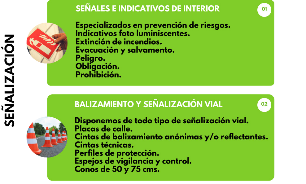 Disponemos de diversos tipos de señalización, adecuados al lugar de instalación.